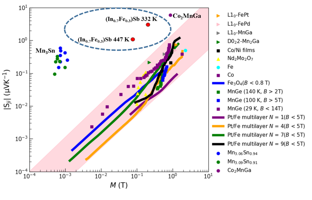 (In,Fe)Sb強磁性半導体の高いキュリー温度と高い異常ネルンスト効果の実証(Featured Article)